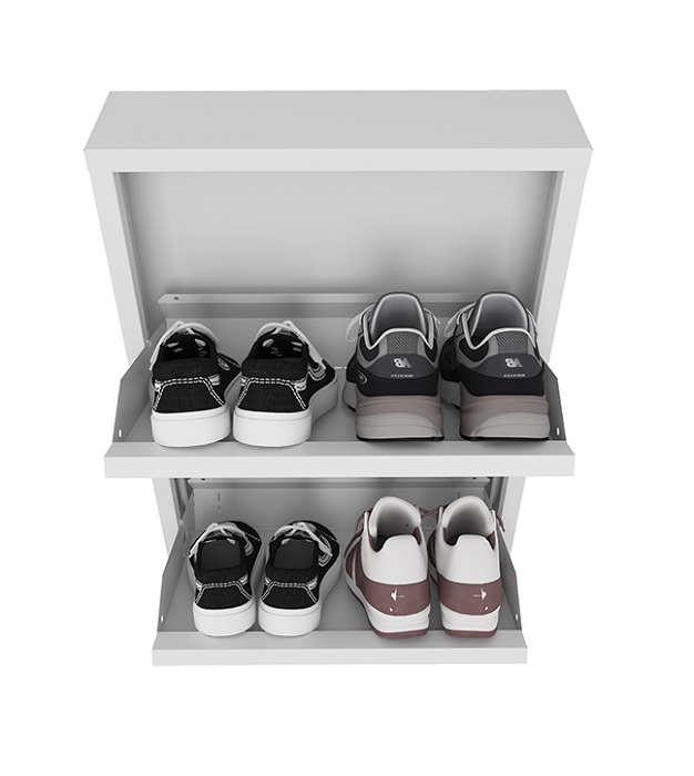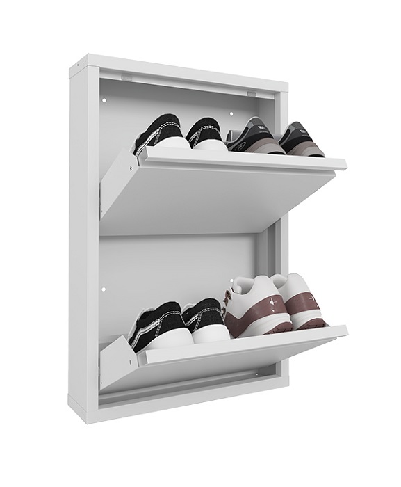 Обувница Практик ОМ-2 белая предназначена для хранения обуви. Обувница состоит из двух отделений, каждое отделение вмещает 2 пары обуви (до 43 размера). Изготовлена из стали, поставляется в собранном виде. Цвет: белый Ral 9003. Тип покрытия: порошковое
