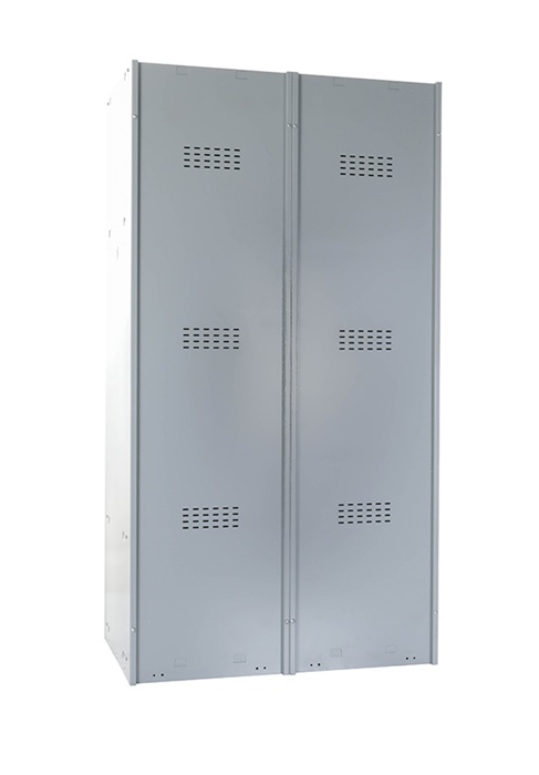 Модульная система локеров Практик ML 21-80 (1500) базовый модуль предназначен для хранения сменной одежды в производственных, спортивных и других помещениях, а также для организации камер хранения. Представляет собой сборно-разборную жесткую конструкцию, усиленную сварной рамой. Собирается в вертикальном положении при помощи зацепов и саморезов. Специальные элементы боковых креплений на боковой стенке позволяет наращивать ряд модулей любой длины. Все модули серии ML совместимы между собой. Базовый модуль МL 21-80 (1500) оснащен улучшенной вентиляцией на дверях и задней стенке. Каждая секция комплектуется полкой для головного убора, перекладиной для вешалок и крючками. Двери закрываются ключевым замком Практик (2000 комбинаций). Открывания дверей правостороннее или левостороннее. Цвет: серый-полуматовый (Ral 7038). Возможен окрас в другие цвета из палитры производителя. Дополнительная опция: замок PL (вместо ключевого замка устанавливается бесключевой замок Euro-locks A129 с устройством под навесной замок). Поставляется в разобранном виде
